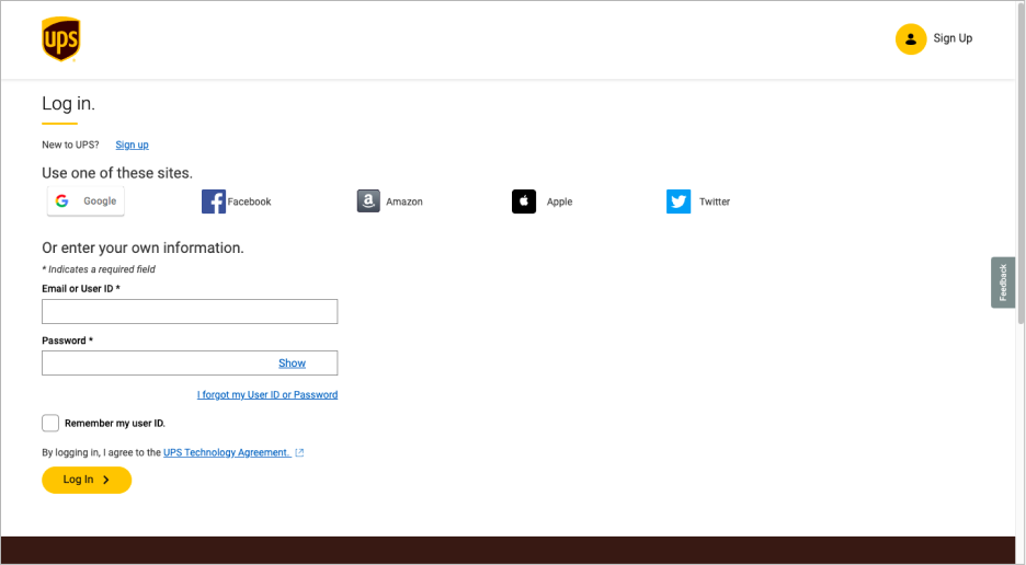 As a team we decided to redesign the UPS website because of its global footprint and users in virtually every country. We then chose to focus on the sign up flow as it is an integral experience for a user as they are first navigating a website. If the user has a bad experience during the sign up process they user could build distrust with the company and potentially go to a competitor site.